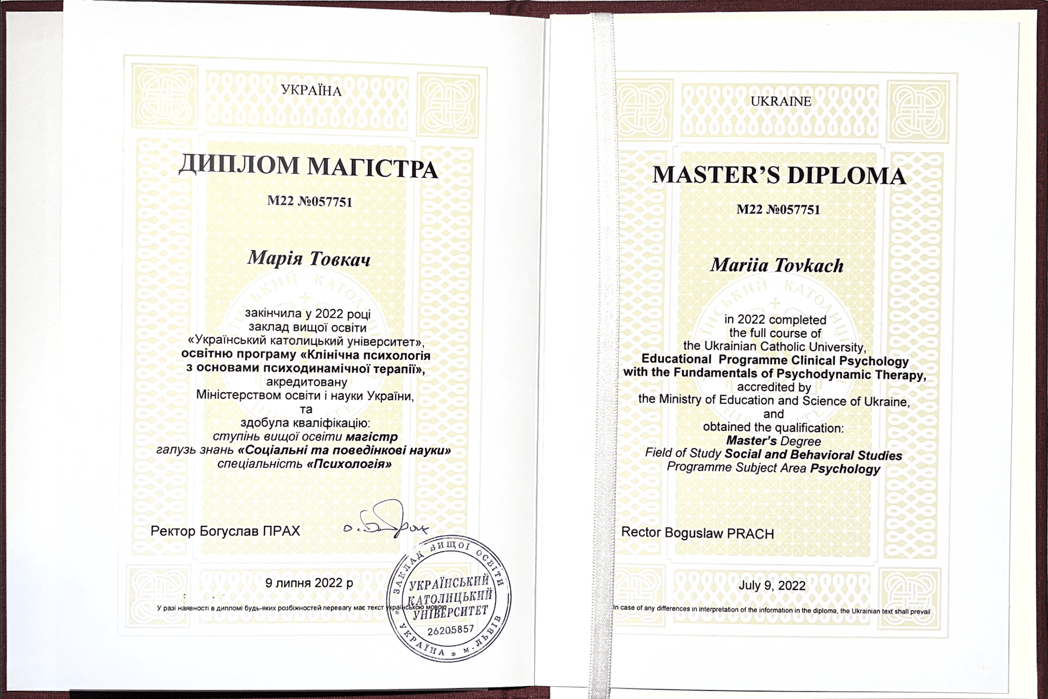 психологія УКУБакалаврат з психології став фундаментом моєї професійної підготовки та роботи з людьми.